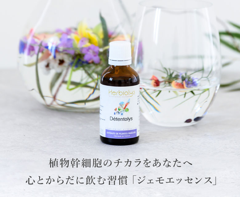 新芽や蕾(植物幹細胞)のエネルギーを体内に取り入れるフランスの新しいハーブ療法。オーガニック認証「ABマーク」取得エルビオリス社のジェモレメディ。ジェモセラピーはハーブの中の最先端の分野です。美やアンチエイジング、ボディワーカーなど、プロの方の間で「蕾」に興味を持っている方が増えています。